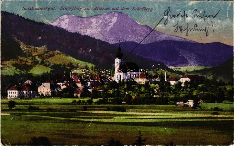 Schörfling am Attersee (Salzkammergut), Schafberg / general view, church, mountain (fl)