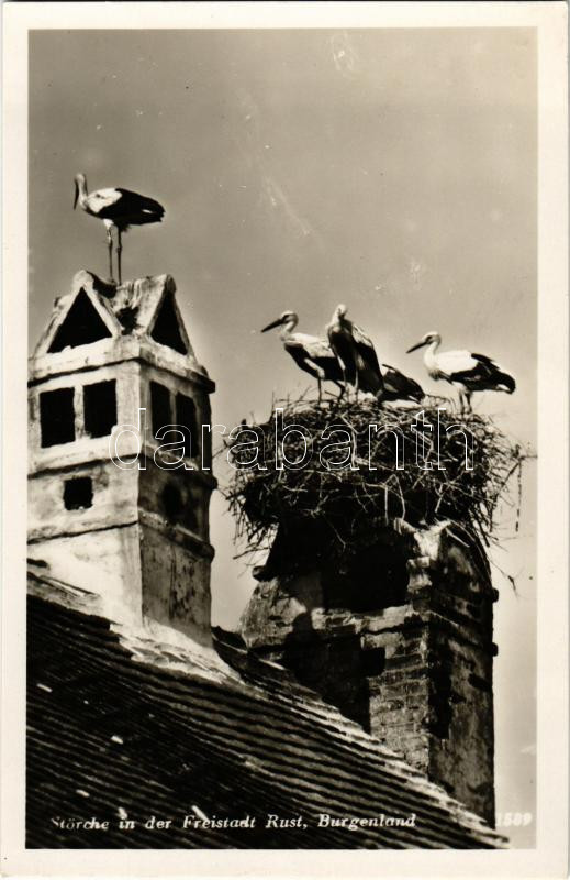 Ruszt, Rust am Neusiedlersee; Störche. Verlag Edmund Frankendorfer / gólyák / storks