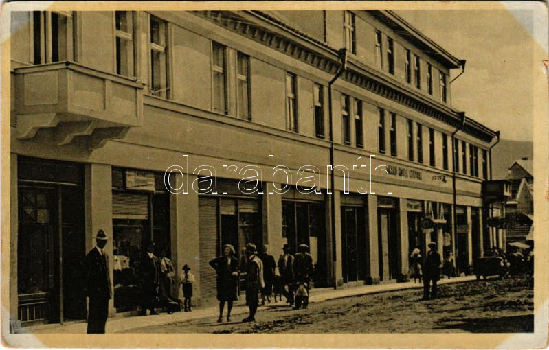 Huszt, Chust, Khust; Központi szálloda, üzletek. Dmitrij Bogatyrev / Hotel Central, shops (kis szakadás / small tear)