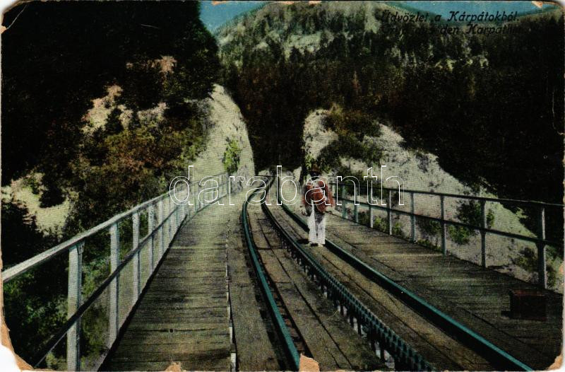 Kárpátok, Karpaten, Carpathian mountains; vasút. Meisels Bernát, K. J. Bp. 1917/21. / railway (EM)