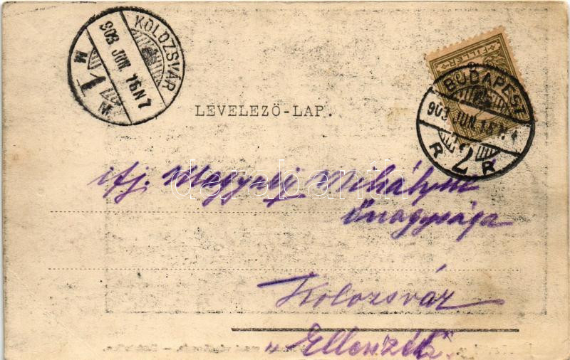 1903 Budapest II. Hűvösvölgy, villamos vasúti végállomás, villamos, vasutasok (EB)