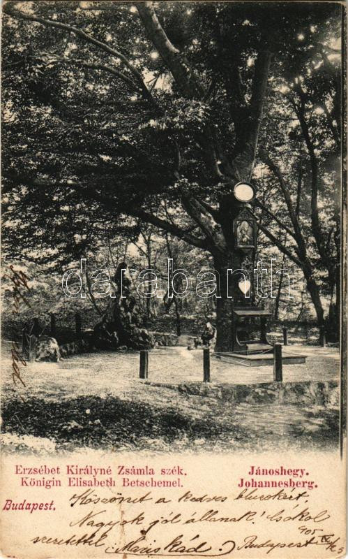 1905 Budapest XII. Jánoshegy, Erzsébet királyné (Sisi) szobor és zsámla szék (EK)
