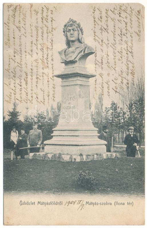 1908 Budapest XVI. Mátyásföld, Mátyás szobra, Ilona tér (EM)