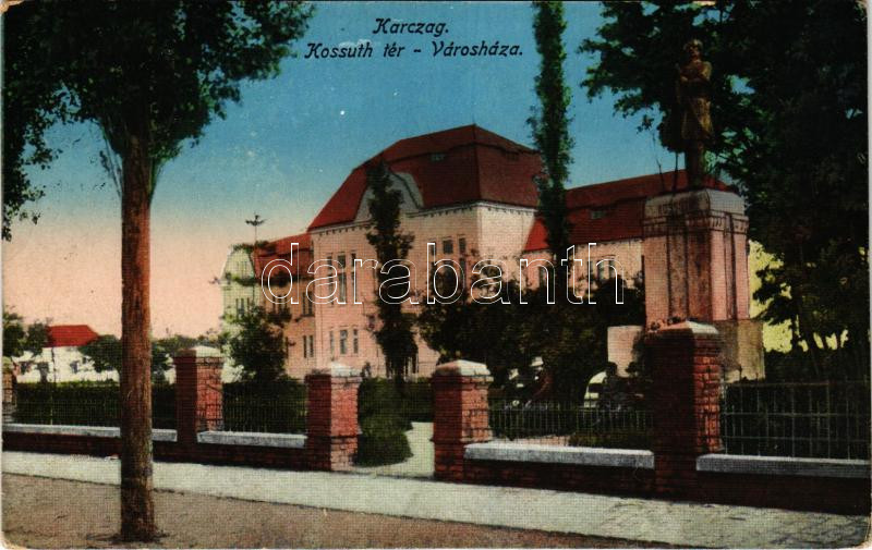 1917 Karcag, Kossuth tér, Városháza. Nagy Lajos és Társai Kertész és Simon kiadása (EK)