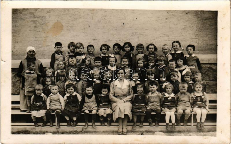 1936 Budapest II. Pesthidegkút, óvodások csoportképe. Czillei photo (kis szakadás / small tear)