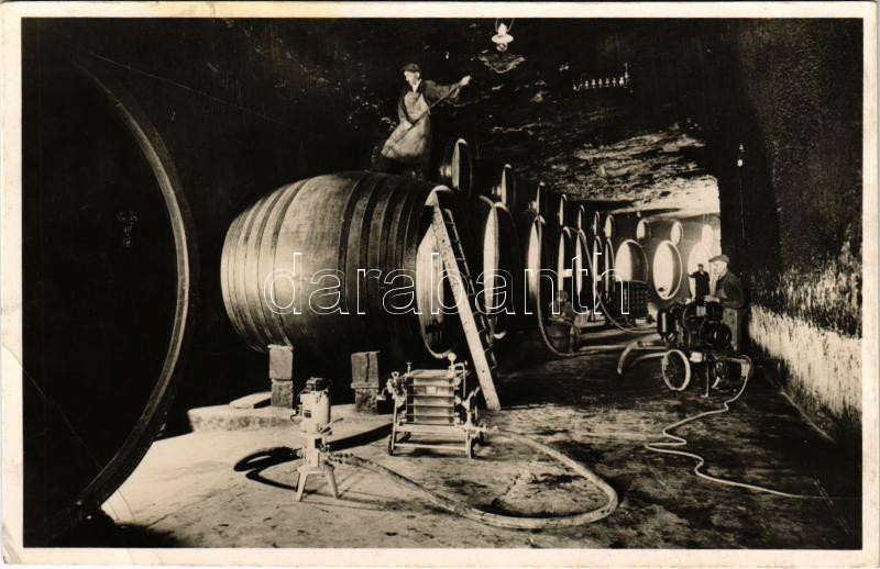 1940 Budapest XXII. Budafok, Hangya borpincészete, belső hordókkal (EB)