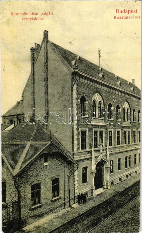 Budapest I. Krisztinaváros, Koronaőr utca, Polgári leányiskola (modern reprint) (vágott / cut)