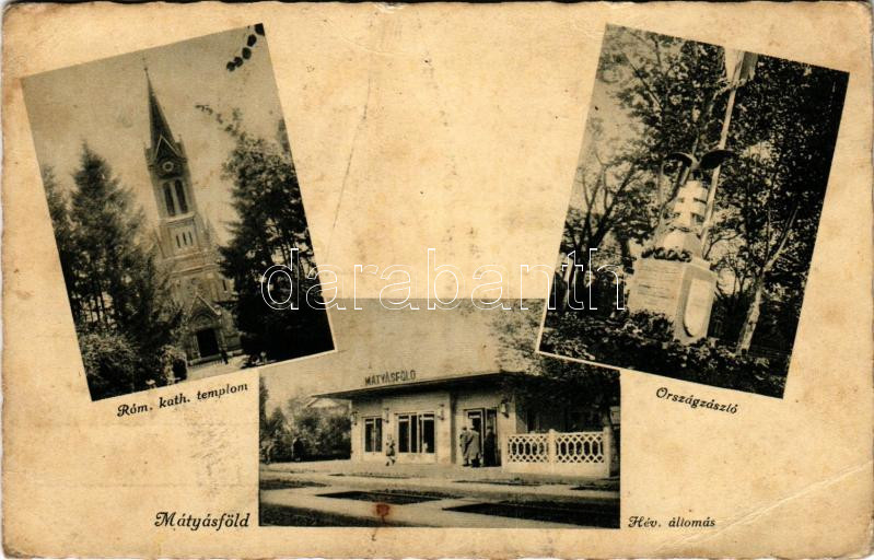 Budapest XVI. Mátyásföld, Római katolikus templom, Országzászló, HÉV (Helyiérdekű Vasút) vasútállomás (EB)