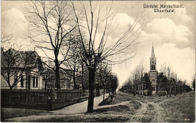 Budapest XVI. Mátyásföld, Római katolikus templom, utca részlet. Varga Sándor kiadása