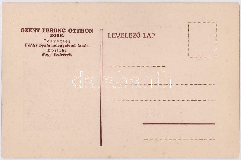 Eger, Szent Ferenc Otthon. Tervezte Wälder Gyula műegyetemi tanár. Építik Nagy Testvérek (EK)