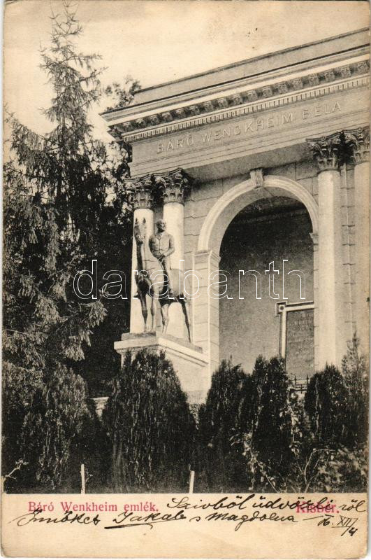Kisbér, Báró Wenckheim emlékmű. Haslinger Mór kiadása (ázott / wet damage)