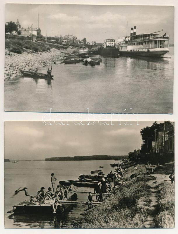 Mohács - 6 db MODERN képeslap: Duna-parti látképek, hajók: KRIVÁN, DEÁK FERENCZ (Képzőművészeti Alap)