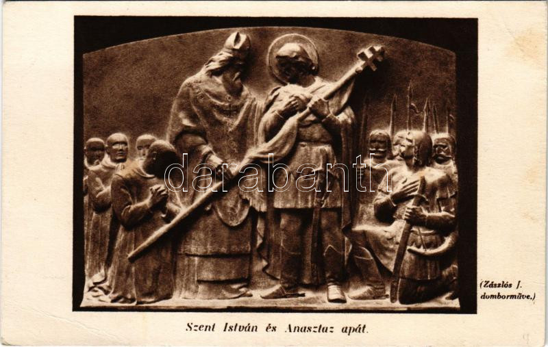 Pannonhalma, Szent István és Anasztáz apát. Zászlós I. domborműve (EB)