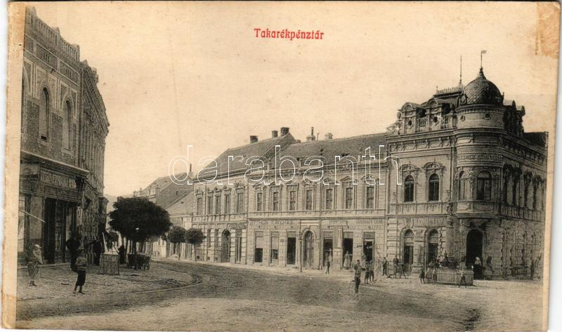Siklós, Takarékpénztár, Krizmánovics Lajos, Puppi Ant. és Budimacz Antal üzlete, Otthon kávéház (non PC) (r)