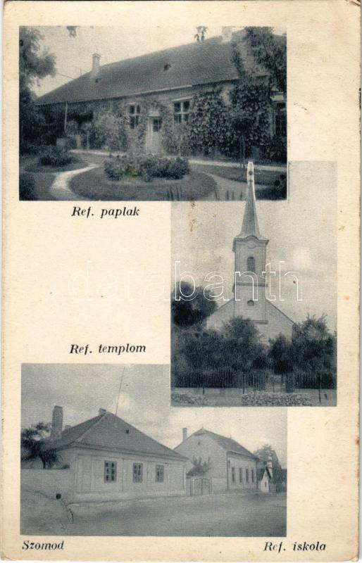 Szomód, Református templom és paplak, iskola. Hangya kiadása (Rb)