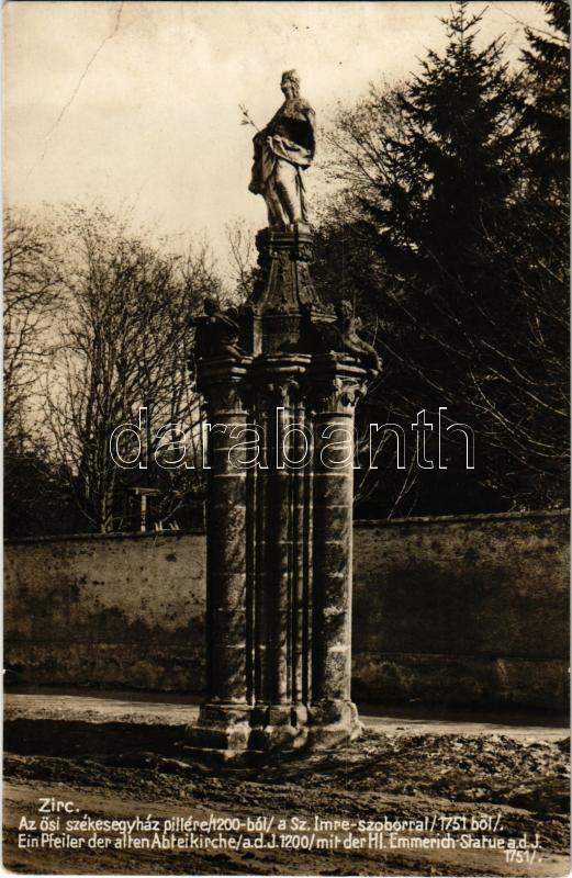 Zirc, Az ősi székesegyház pillére 1200-ból a Szt. Imre szoborral 1751-ből (fa)