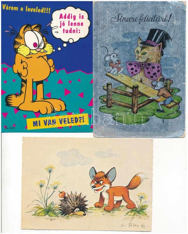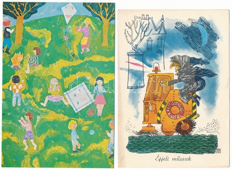 15 db MODERN motívum képeslap: poén, reklám, humor, rajzfilm; vegyes minőségben