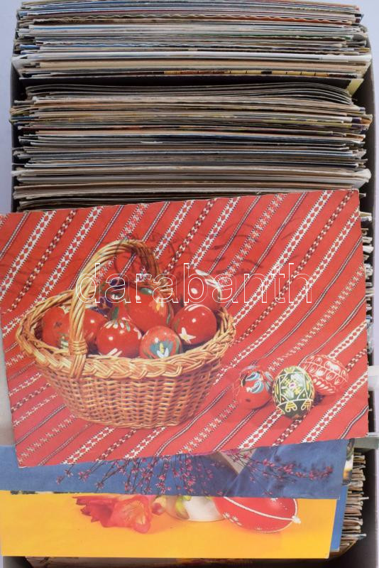 Kb. 600 db MODERN karácsonyi-húsvéti-művészeti-reklám képeslap cipősdobozban, közte sok megíratlan / cca. 600 modern motive postcards in a shoe box, with many unused ones