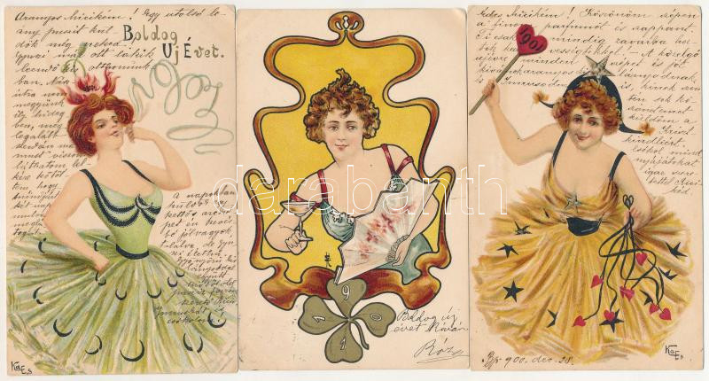 3 db RÉGI (1905 előtti) szecessziós szignós művészlap: hölgyek / 3 pre-1905 signed art postcards: ladies