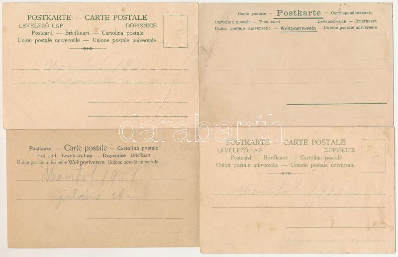 4 db RÉGI (1905 előtti) szecessziós művészlap: hölgyek / 4 pre-1905 Art Nouveau lady art postcards