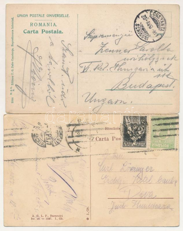 ROMÁNIA - 2 db RÉGI város képeslap: Konstanca és Bukarest / 2 pre-1945 Romanian town postcards: Constanta and Bucuresti