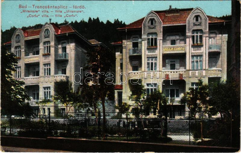 Trencsénteplic, Trencianske Teplice; Miramare és Corfu villa. Wertheim Zsigmond kiadása / Vill Miramare, Villa Corfu (EK)