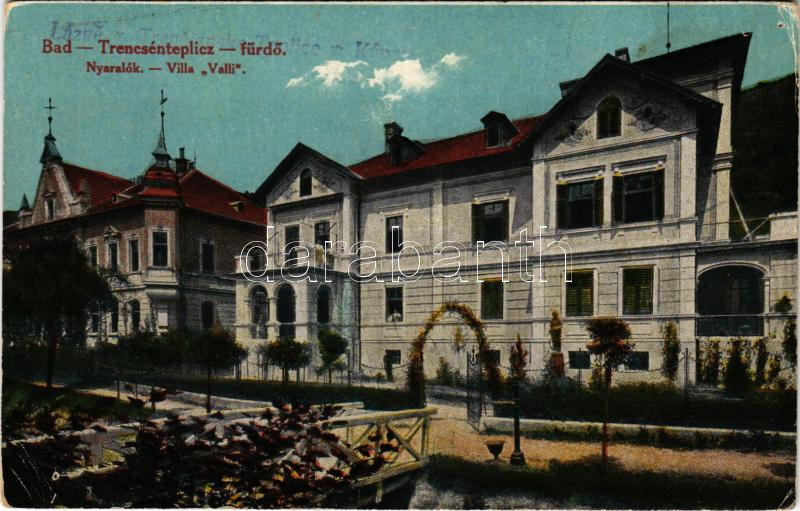Trencsénteplic, Trencianske Teplice; nyaralók, Valli villa. Wertheim Zsigmond kiadása / villas (lyukak / pinholes)