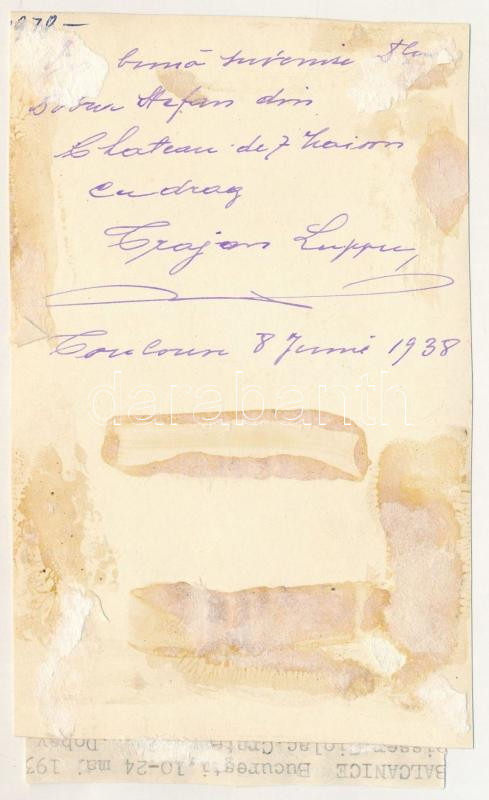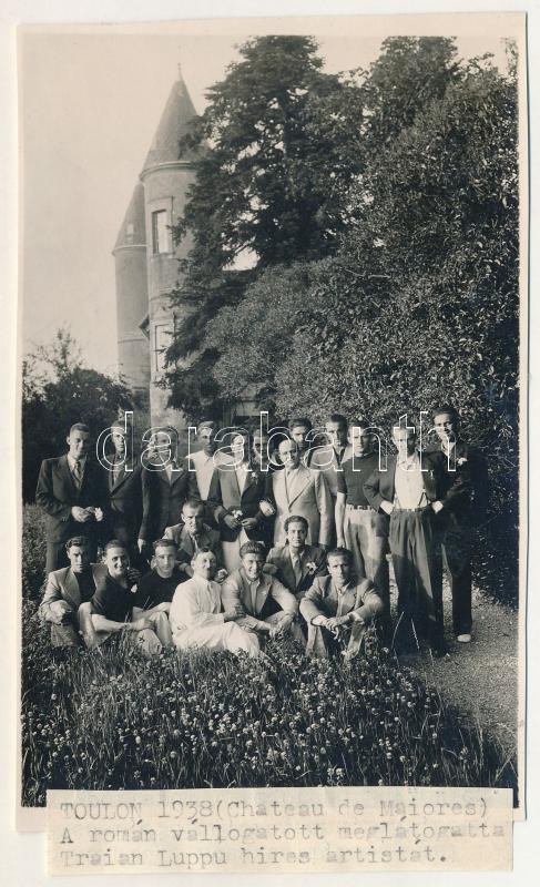 1938 Toulon, Chateau de Maiores, a román labdarúgó válogatott meglátogatta Traian Luppu híres artistát, focisták, csoportkép / Romanian football team group picture, sport photo (15,3 x 9,2 cm) (non PC) (vágott / cut)