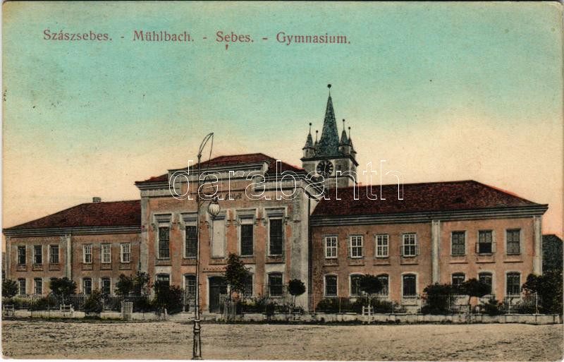1908 Szászsebes, Mühlbach, Sebesul Sasesc, Sebes; Gymnasium / Gimnázium. J. Hientz kiadása / school (EK)