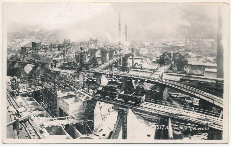 1938 Resica, Resita; Vedere generala. Fratii Deutsch / vasgyár, iparvasút / iron works, factory, industrial railway (felületi sérülés / surface damage)