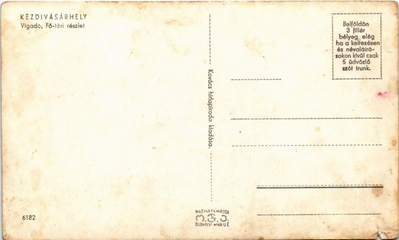 Kézdivásárhely, Targu Secuiesc; Vigadó, Fő téri részlet, Kovács János, Mánya Ernő üzlete. Kovács kiadása / Redoute, main square, shops (b)
