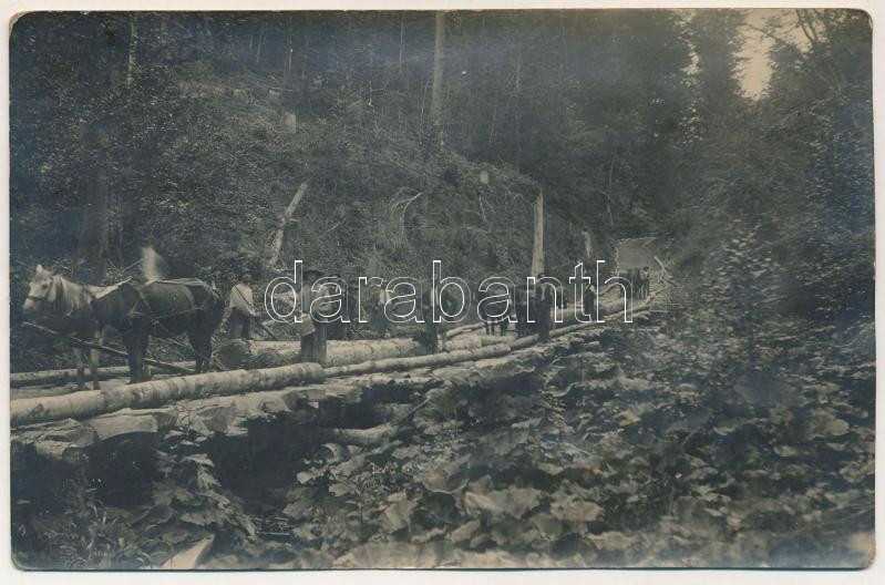 Úzvölgye, Valea Uzului; favágók / lumberjacks, lumber yard. photo (ragasztónyomok / glue marks)