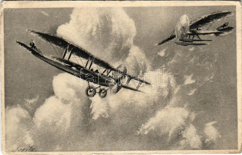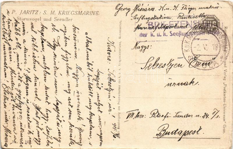 1918 Sturmvogel und Seeadler. S.M. (K.u.k) Kriegsmarine / Austro-Hungarian navy postacard, seaplane, hydroplane, naval aircrafts s: P. Jaritz + "BRIEFZENSUR K.u.K. Seeflugstaften" (EK)