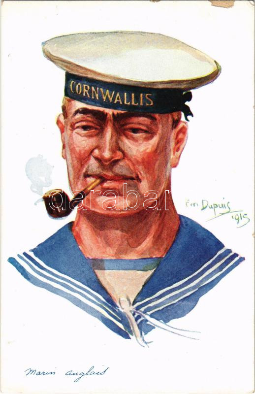 Marin Anglais / English marine, HMS Cornwallis (Royal Navy). French military art postcard. Visé Paris No. 51. "Nos Alliés" (2e Série) s: Em. Dupuis (worn sorface)