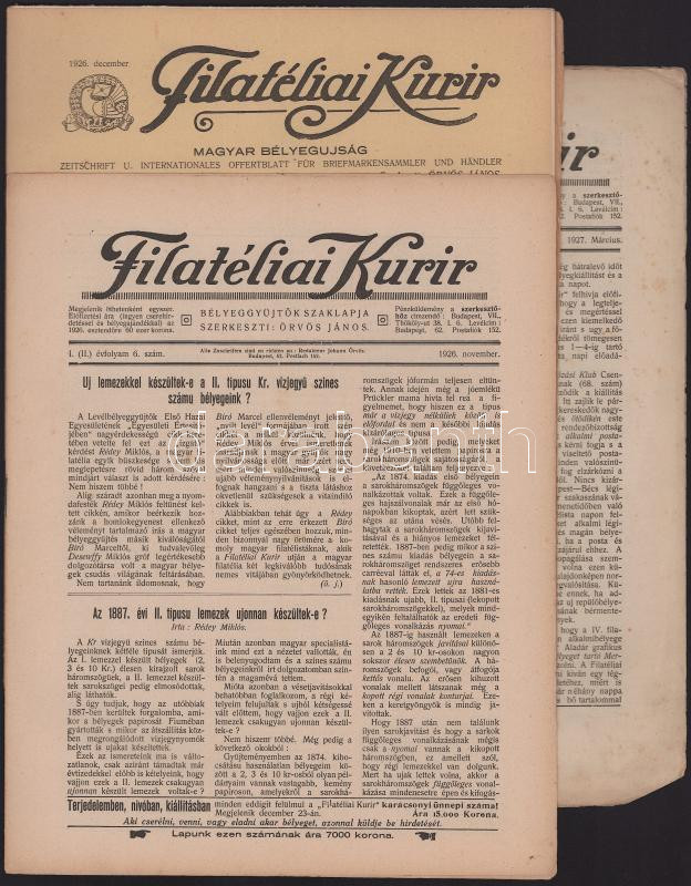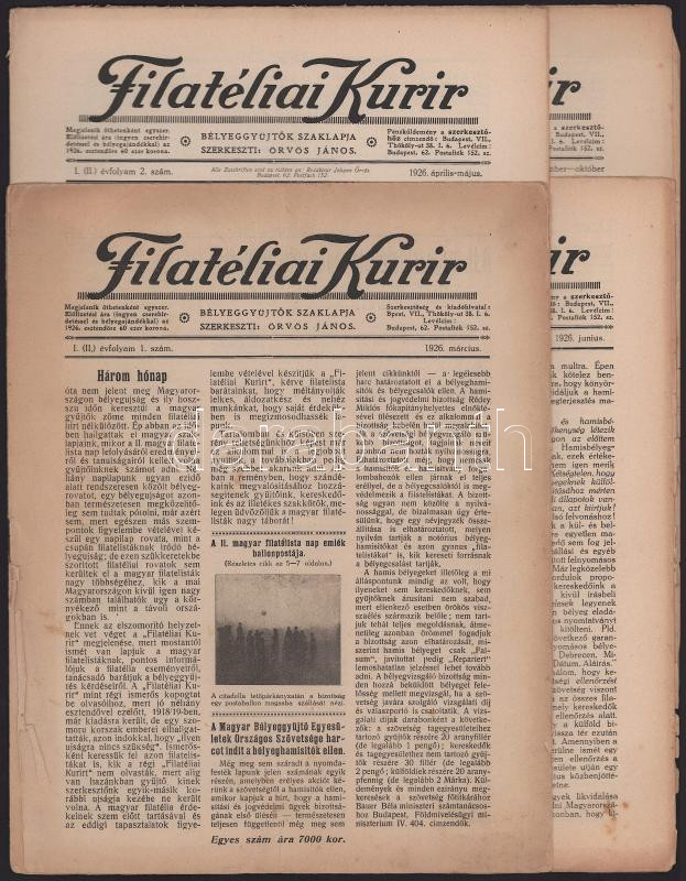 A Filatéliai Kurir 1926-1927 év 7 különbőző száma