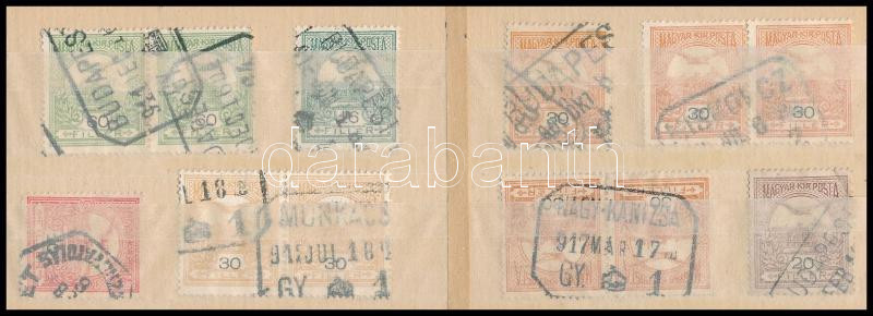 1900-1913 15 db Turul bélyeg postaügynökségi bélyegzésekkel, összefüggések is, közte 11 db II. típus