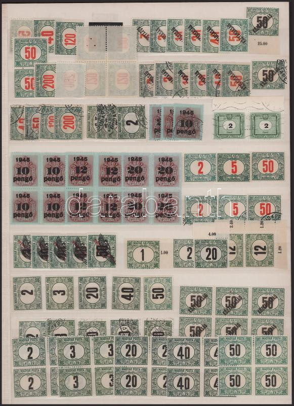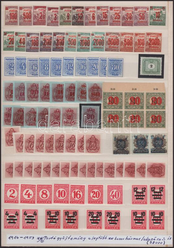 1914-1953 Portó összeállítás főként postatiszta értékekkel, köztük hármaslyukasztásúak is, A/4-es berakólap mindkét oldalán (78.000)