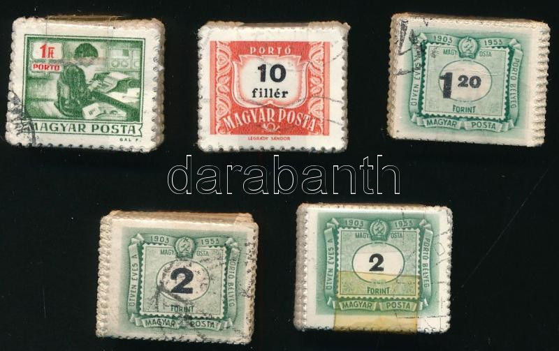 1953-1973 5 db klf portó bélyeg 100-as köteg, benne 1953-as portó 1,20Ft 2Ft, 2Ft kis számmal
