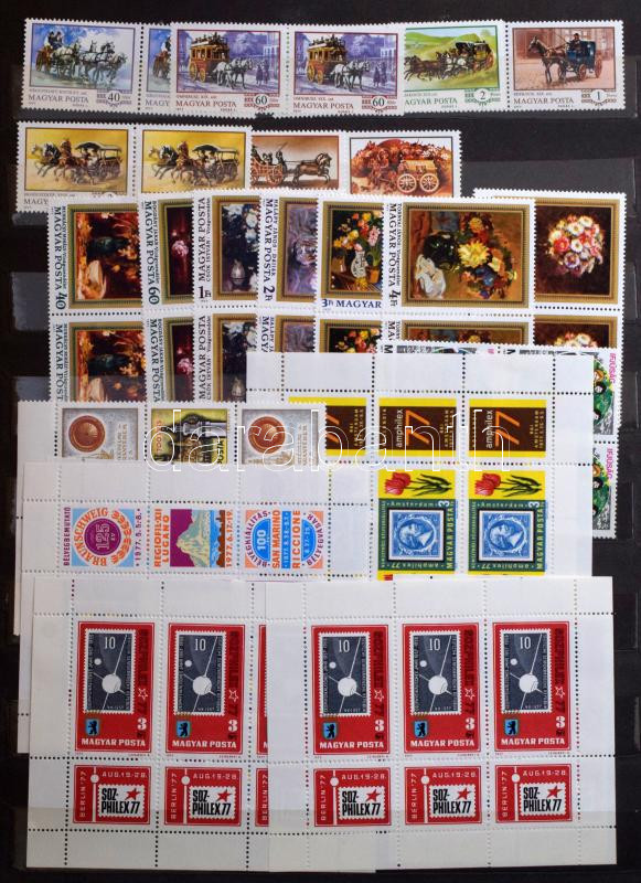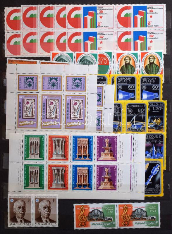 1963-1973 Magyar több példányos összeállítás, benne négyestömbök, blokkok, nagy méretű 10 lapos berakó 16 oldalán