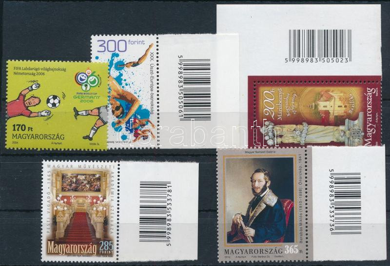 5 db modern magyar bélyeg, közte 4 db ívszéli vonalkódos bélyeg, stecklapon