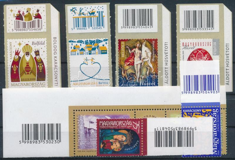 7 db modern magyar vonalkódos bélyeg, stecklapon