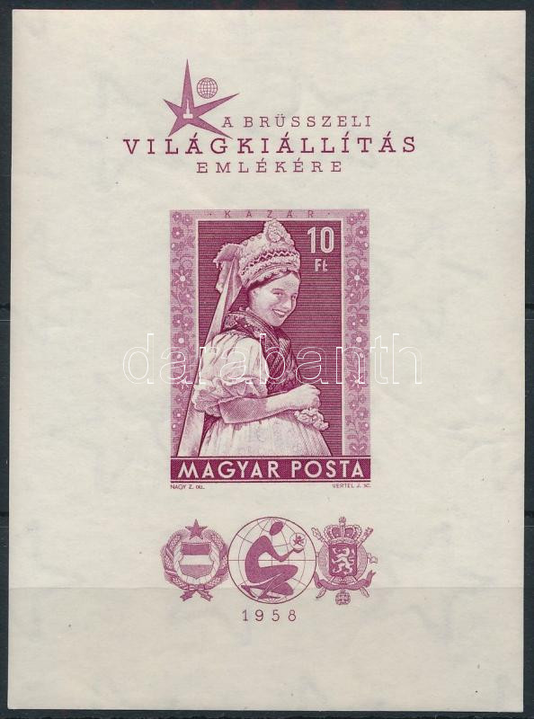 1958 Brüsszeli Világkiállítás vágott blokk (12.000)