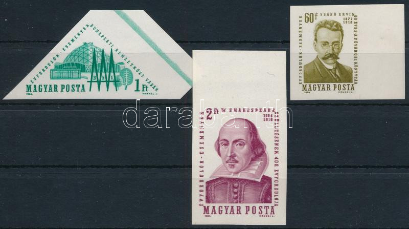 1964 Évfordulók-események 3 klf vágott ívszéli bélyeg