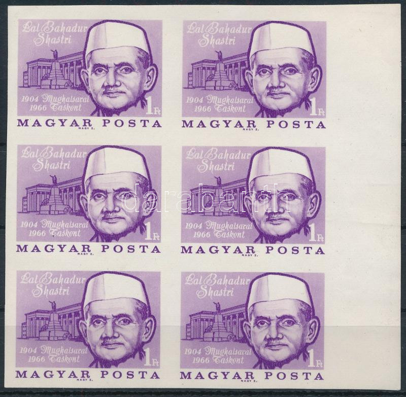 1966 Évfordulók - Események (IV.) L.B. Shastri ívszéli vágott 6-os tömb (9.000)