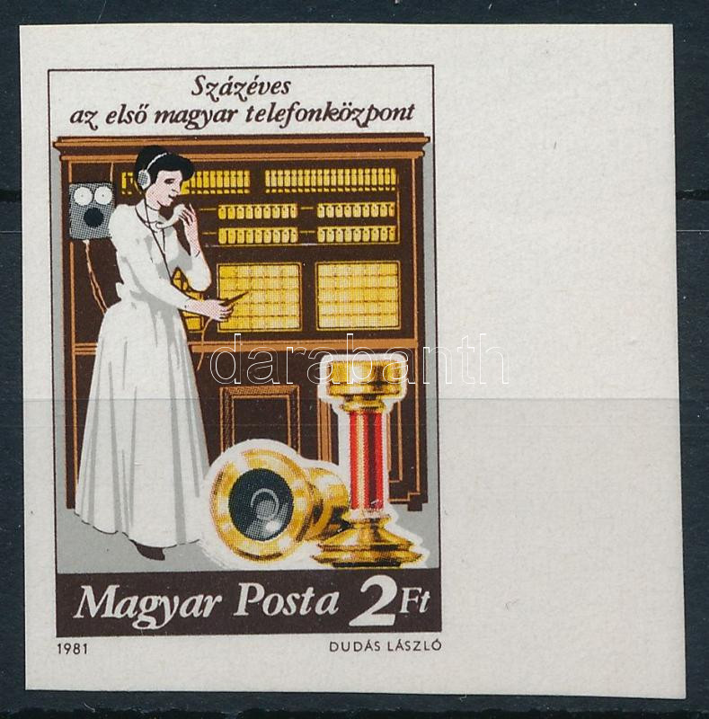 1981 100 éves az első magyar telefonközpont vágott ívszéli bélyeg