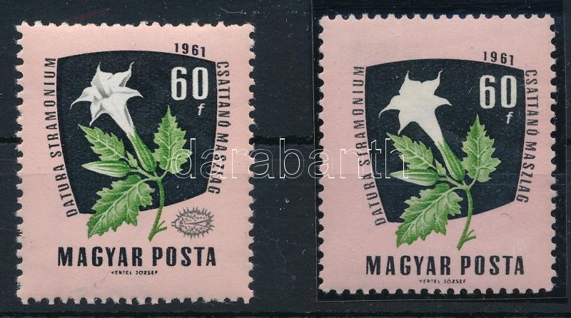 1961 Gyógy- és ipari növények 60f a szürke szín és a termés hiányzik + támpéldány (150.000)
