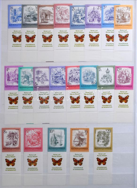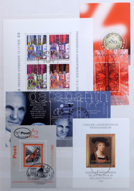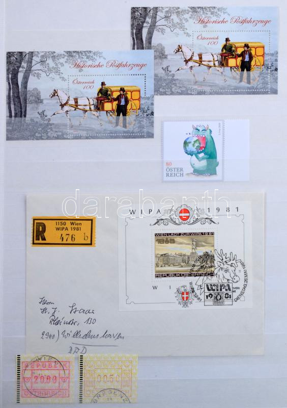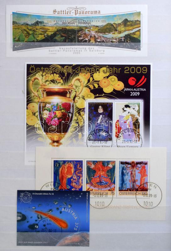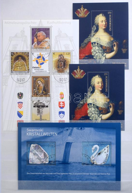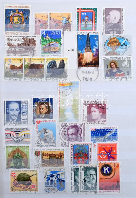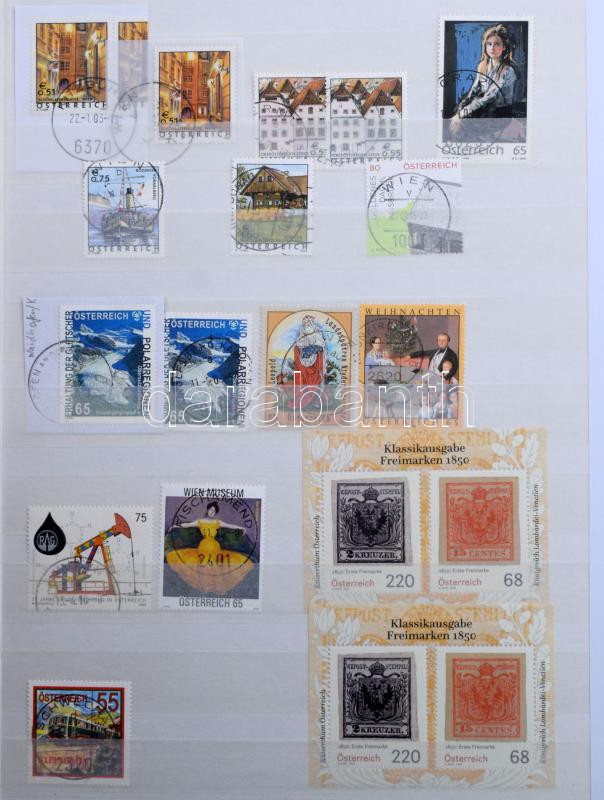 Ausztria gyűjtemény az 1960-2015 közötti időszakból, szép, válogatott minőségű bélyegzésekkel + kevés postatiszta is, minimum 1.500 db bélyeg, 32 fehér lapos A4-es berakóban. Szép és jó minőségű anyag!