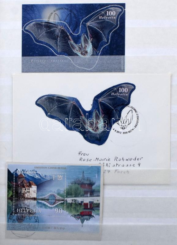 Svájc főleg modern szép minőségű anyag, 32 fehér lapos A4-es berakóban. Érdemes átnézni, magas katalógusérték!