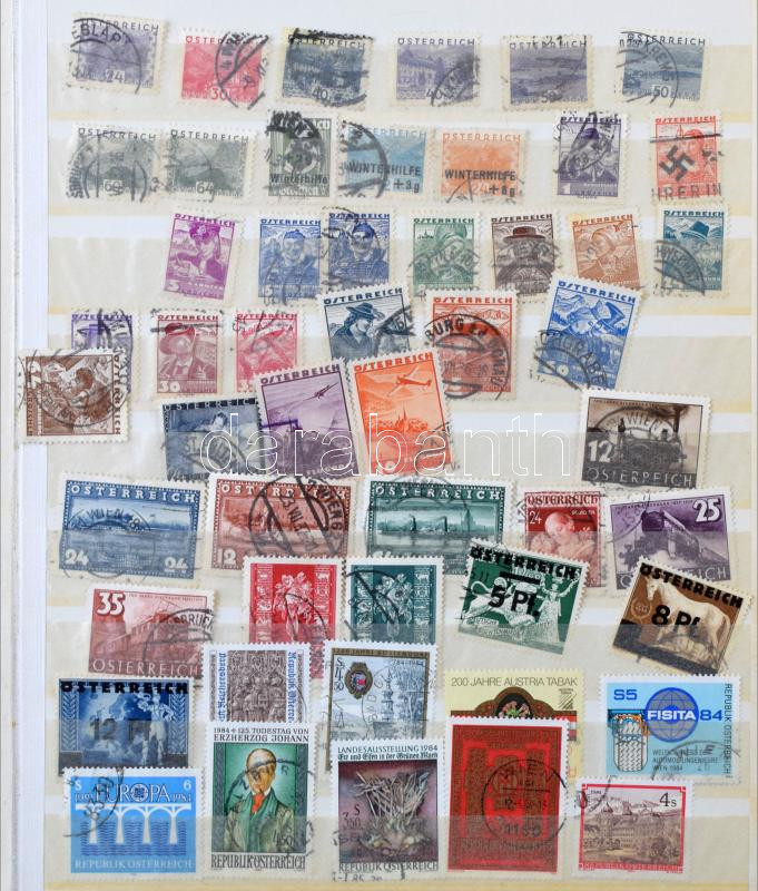 Ausztria kis gyűjtemény és modern rendező 10 lapos A4-es + 10 lapos Schaubek rugós berakó kb felében