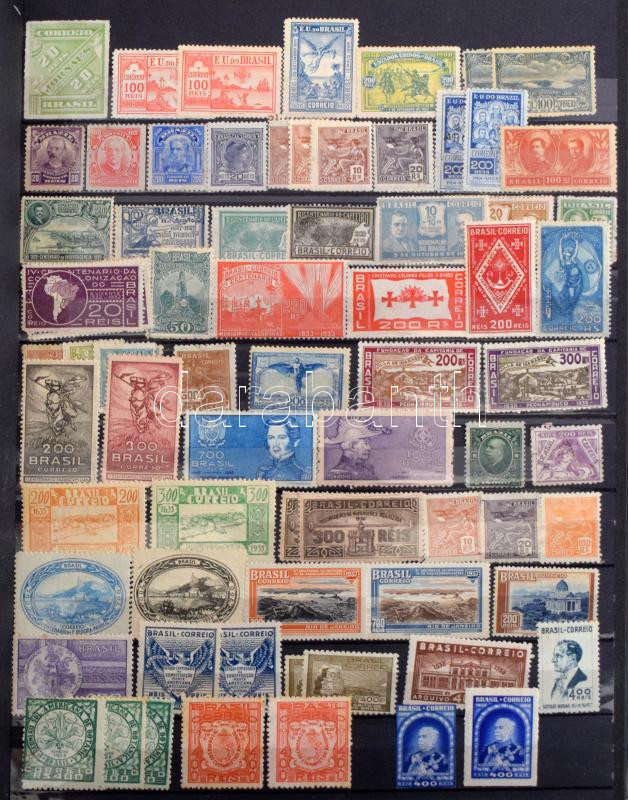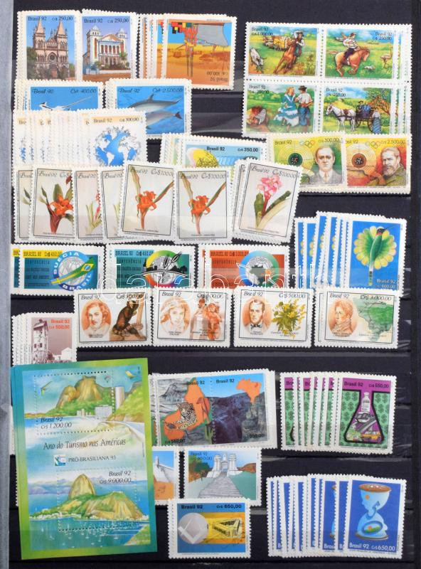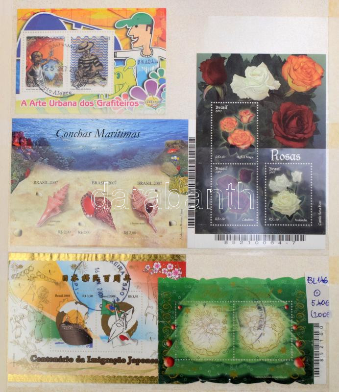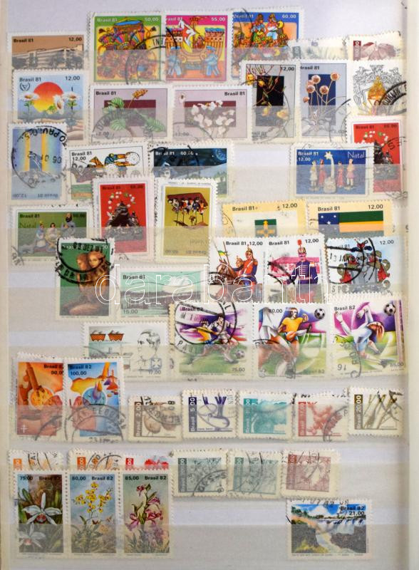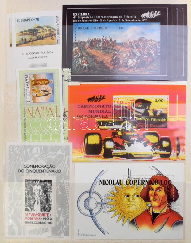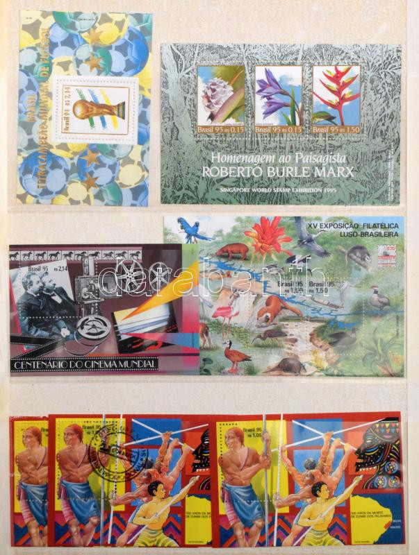 Brazília gyűjtemény 4 db A/4 berakóban, benne blokk készlet, pecsételt és postatiszta rendező, hullámkarton dobozban